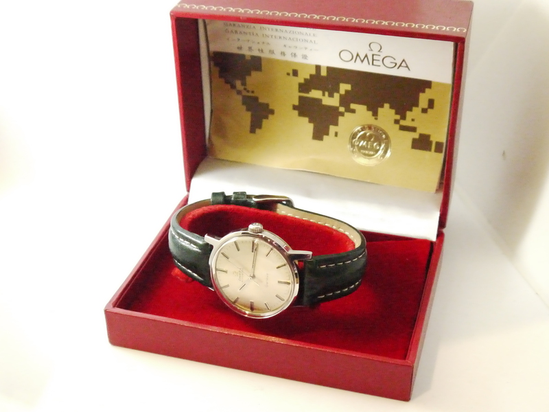 Description: Manufactured in the year Omega’s were first worn on the moon, and sold in 1973 on a cruise ship sailing from Australia, this Omega Genève is an example of the understated quality of the company. Using their calibre 552, finished to what they referred to as their 1st quality (chronometer standard without being certified as such) this movement is considered by many as the finest series of movements Omega have ever made, which is saying something! Recently overhauled and regulated it’s running like a charm, and carries our full 12month guarantee. As with all our watches, genuine parts have been used to complete the restoration, including the glass (which carries the faint central Ω) and crown.